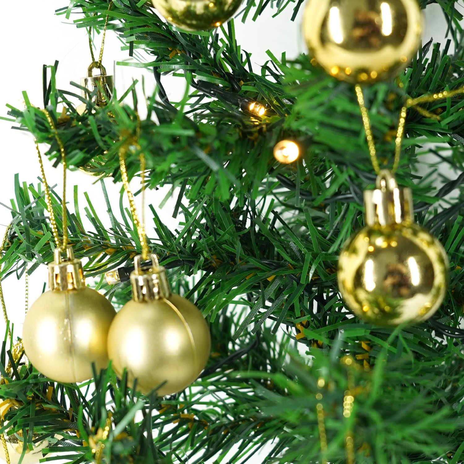 Bradul necesita asamblare.Pachetul contine o instalatie de 20 LED-uri pe baterii si 20 de globuri aurii si suportul din plastic.