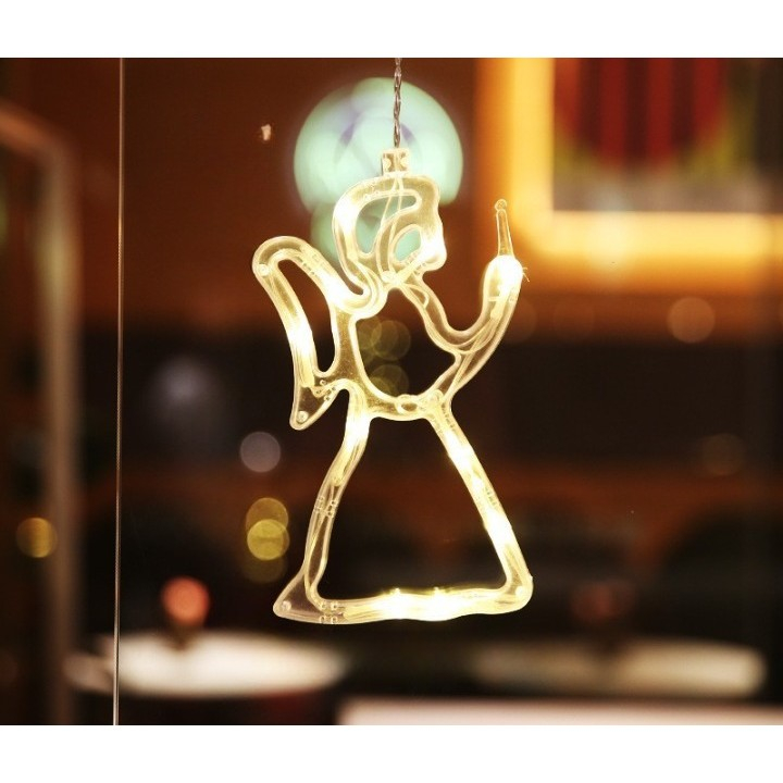 Figurina cu luminite decorative de Craciun in forma de Ingeras si ventuza pentru geam