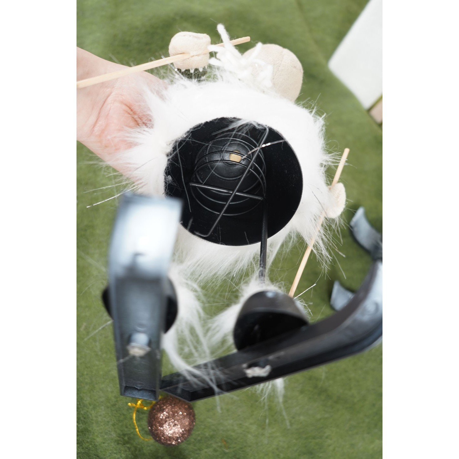 Decoratiune ren pe schiuri Ren adorabil cu schiuri si bete. Are haine verzi cu alb, model de craciun si palarie tuguiata. Are un arc ce il face sa se miste haios la cea mai mica atingere. Este un plus pentru bradul de craciun, in fereastra sau orice loc din casa ce are nevoie de spirit festiv. |